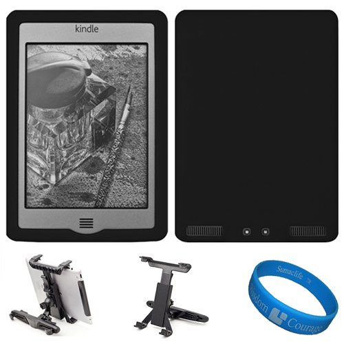 Black Premium Soft Rubberized Protective Silicone Skin Cover for Amazon Kindle Touch 3G / Kindle Touch Wifi 6-inch E ink Display e-reader + Universal Headrest Mount Holder + SumacLife TM Wisdom Courage Wristband